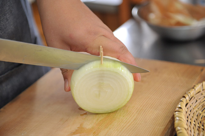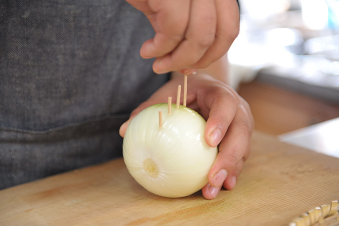 たまねぎに、楊枝を何本も?