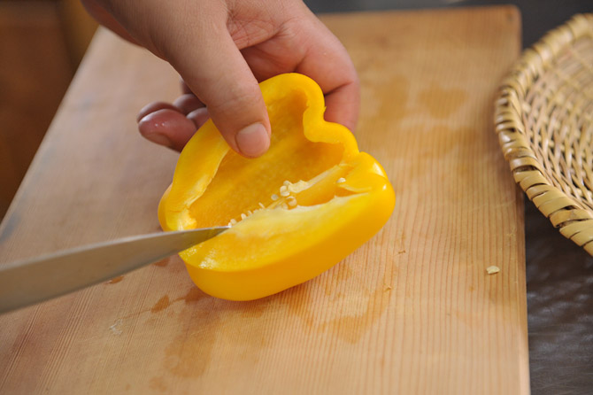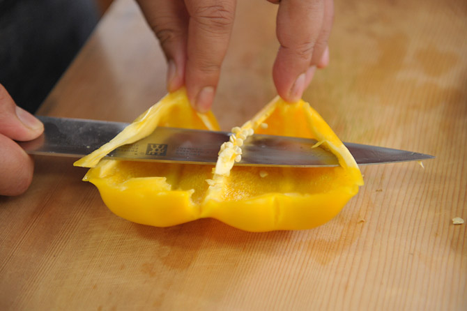 ヘタと、そこからつながる種を外します。
