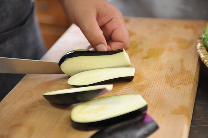 なすは、ヘタのところを落として、