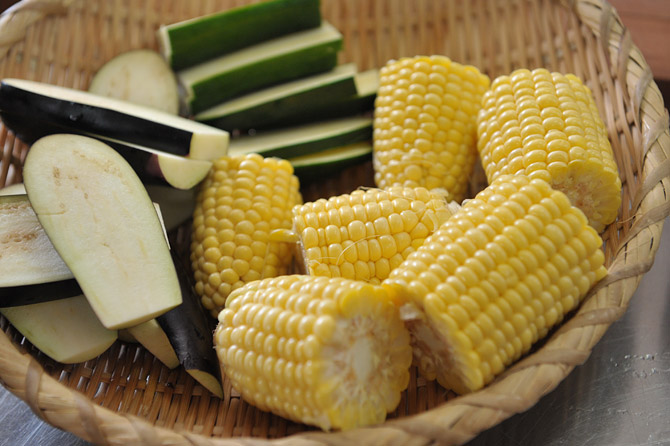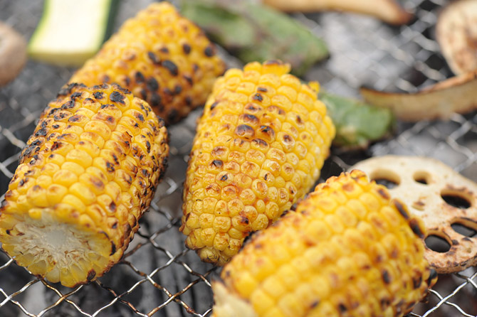 とうもろこしは、おしょうゆをたらして、