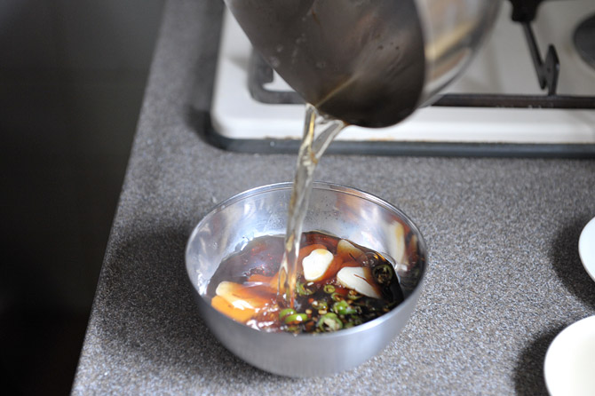 このタレに、お好みでお酢をたらすと、