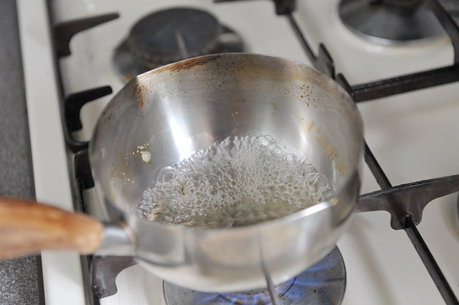 お酒50ccを煮立てます。