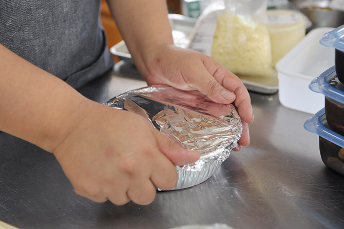 アルミホイルを二重にして、きっちりと