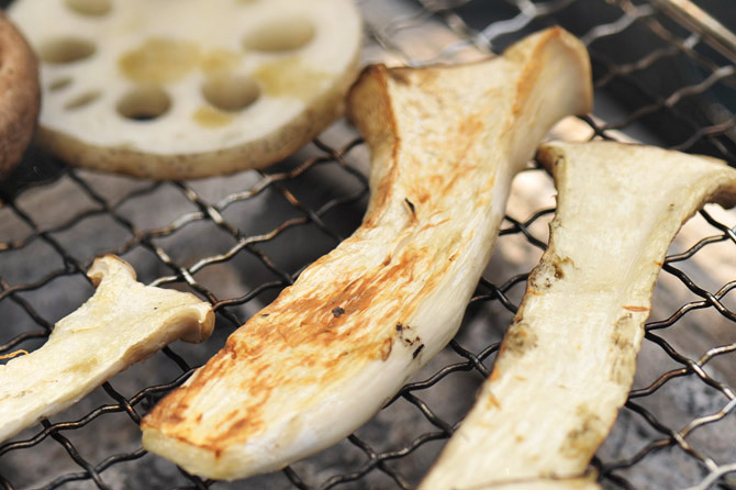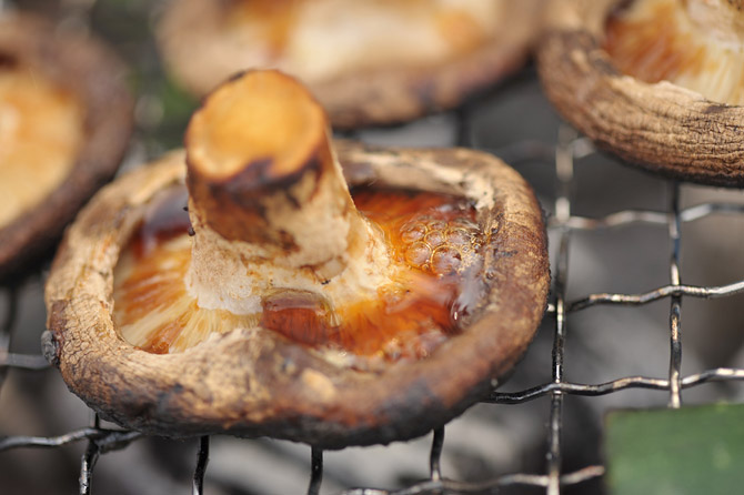 しいたけは、逆さにして焼いて、