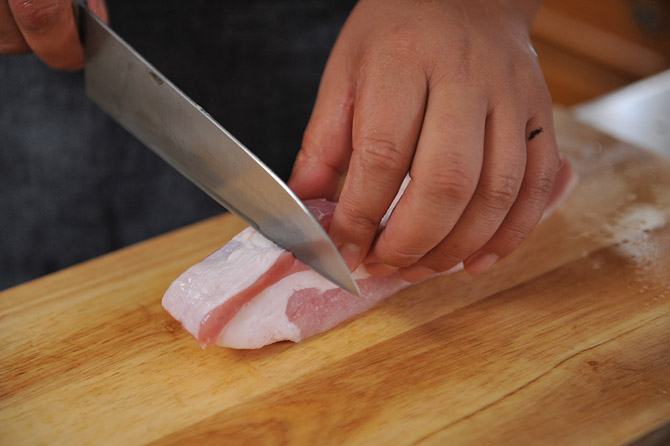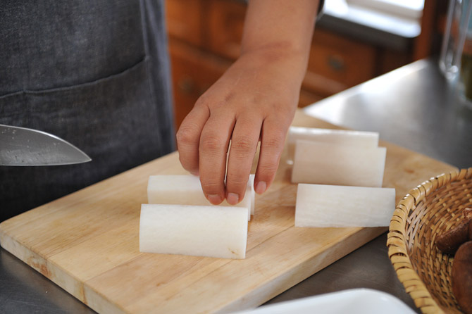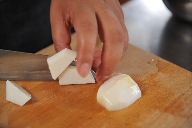 二等分してから、こちらも、ちょっと厚めに切ります。
