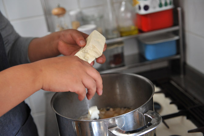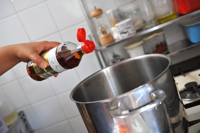 ぐらぐらと沸騰させすぎない程度に加熱しながら、