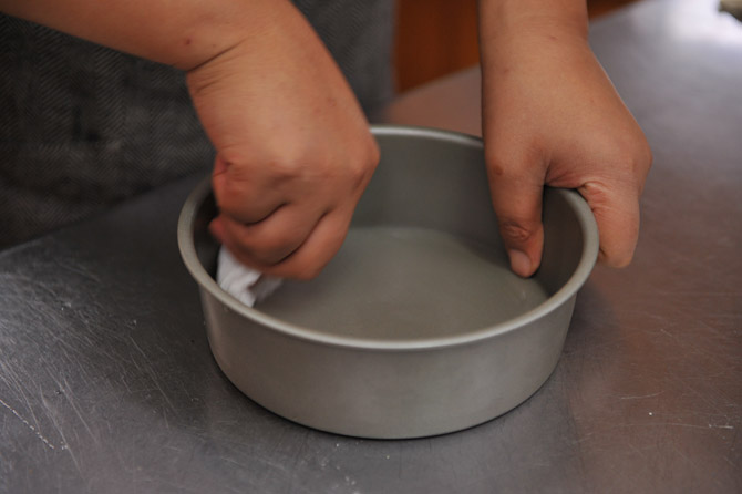 ケーキの型に、バターを塗ります。