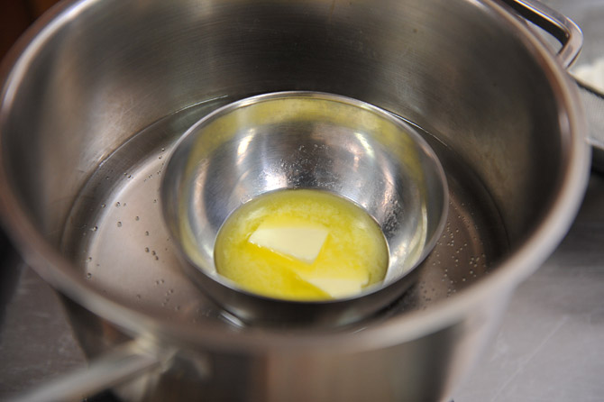 ごく弱火のままボウルをのせて、