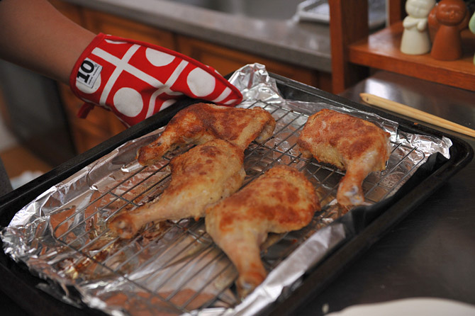 さあ、チキンがこんがり焼き上がりましたよ!