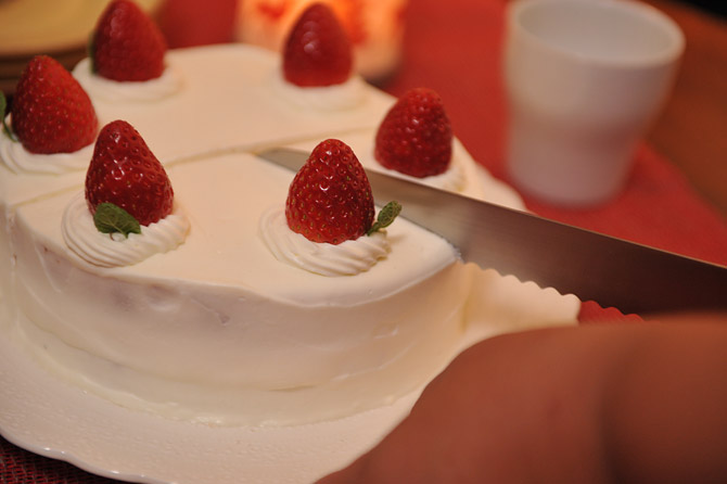 ケーキ用のナイフで切り分けて。