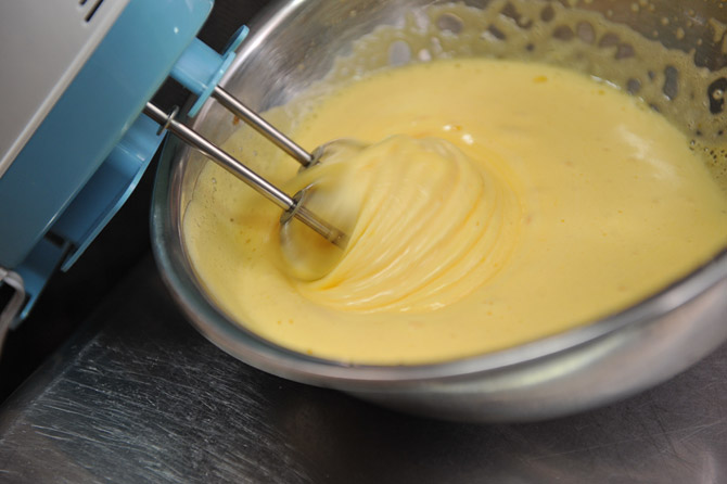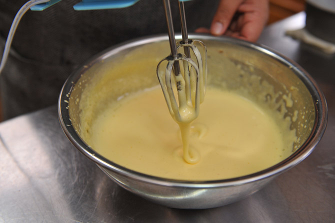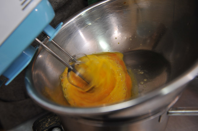 卵を、ハンドミキサーで泡立てます。