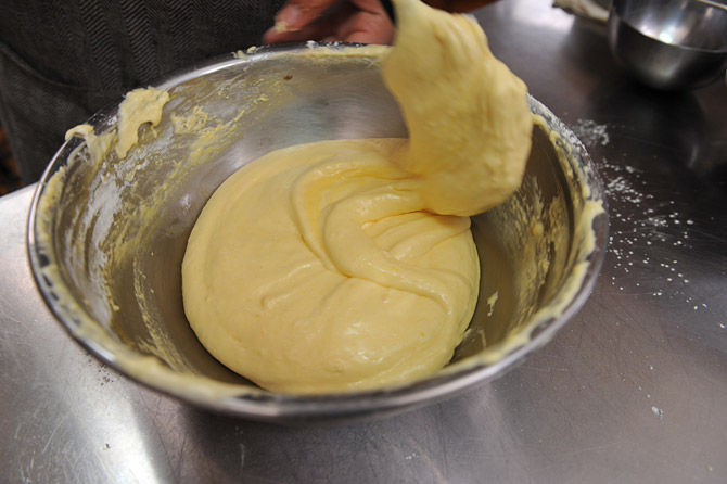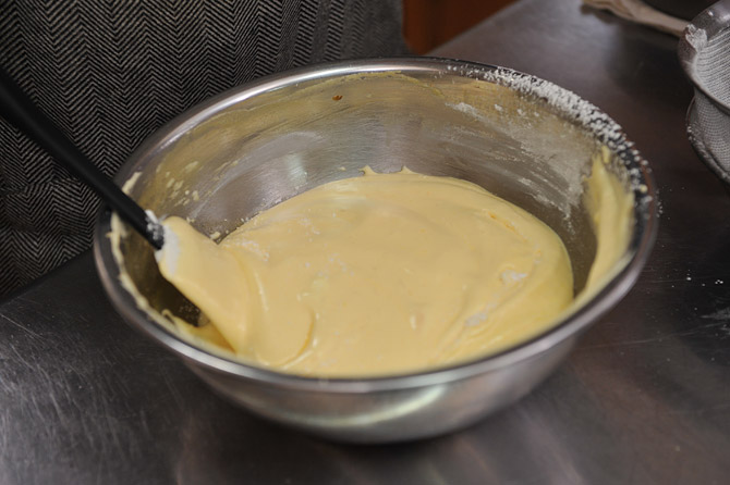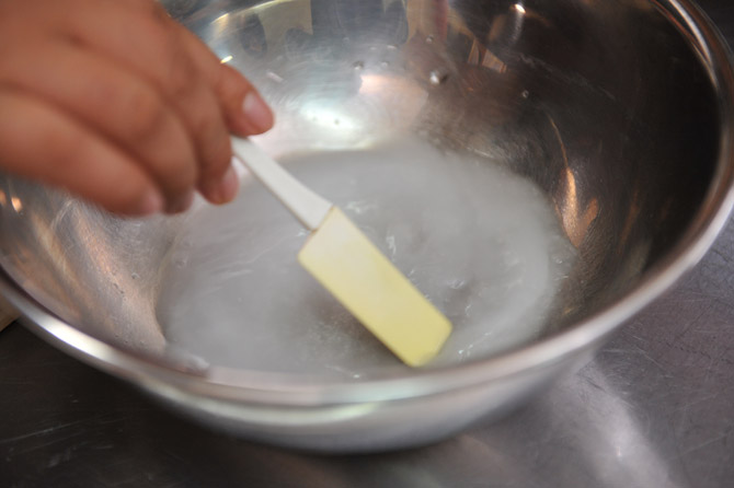 スパチュラ(ゴムべら)に持ち替えます。