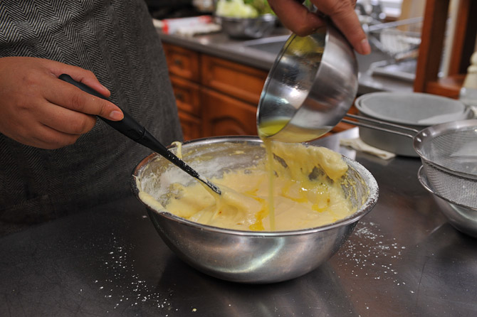 1/3ずつ、混ぜては入れ、混ぜては入れましょう。