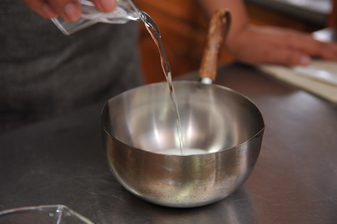 お砂糖が溶けました。注ぎ入れます。