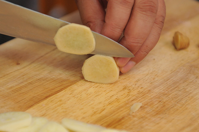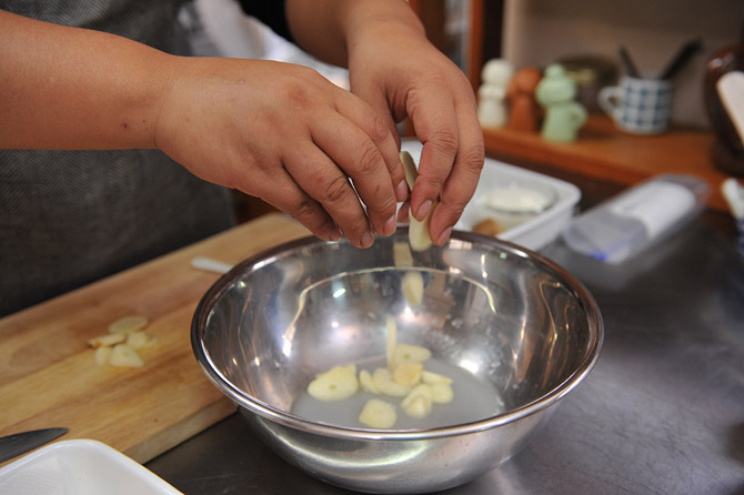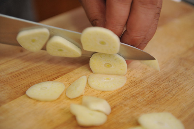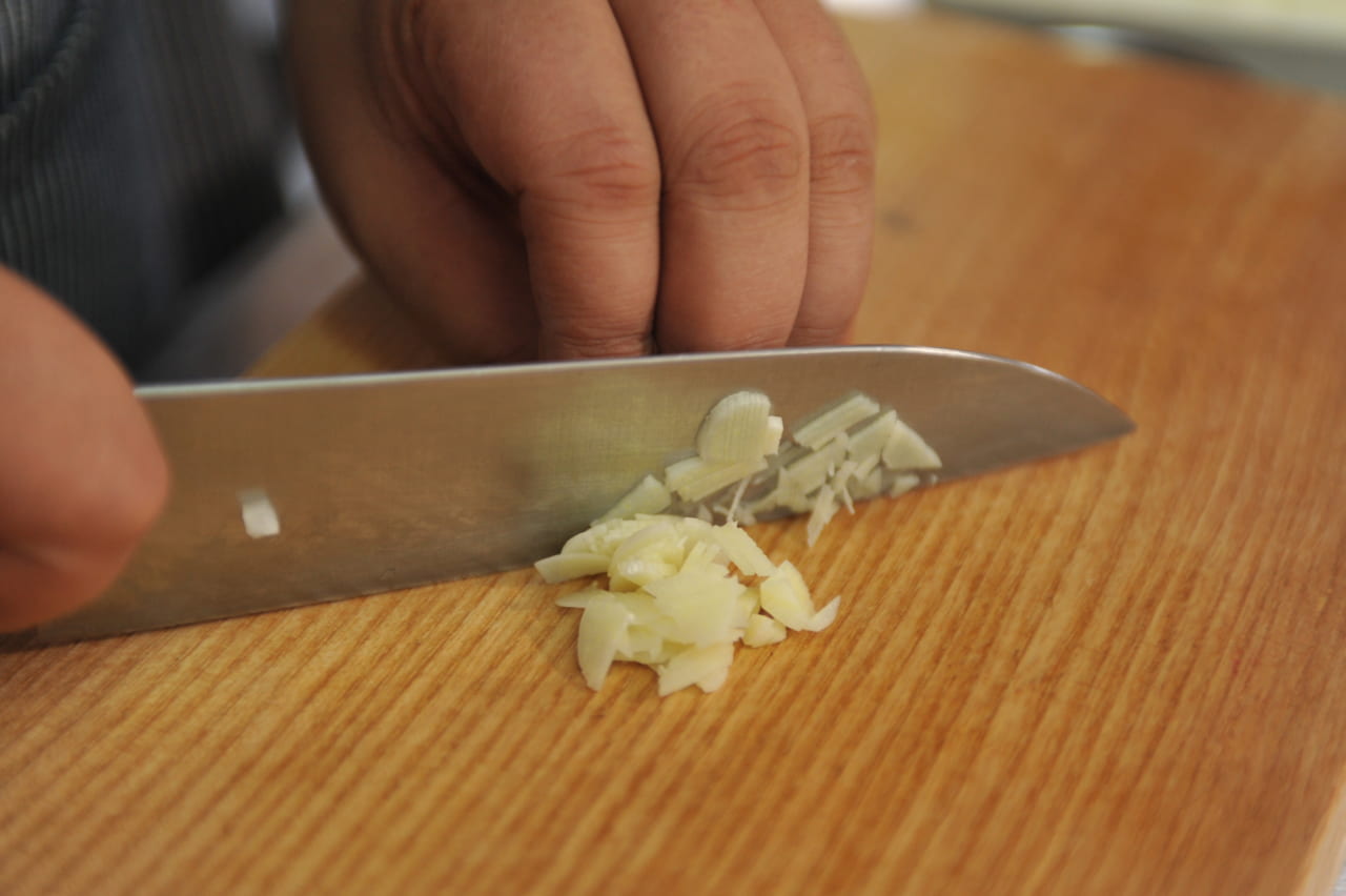 にんにくも、みじん切りにします。