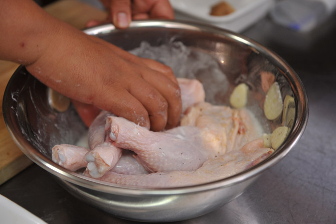 チキンは、漬け込んだことで、