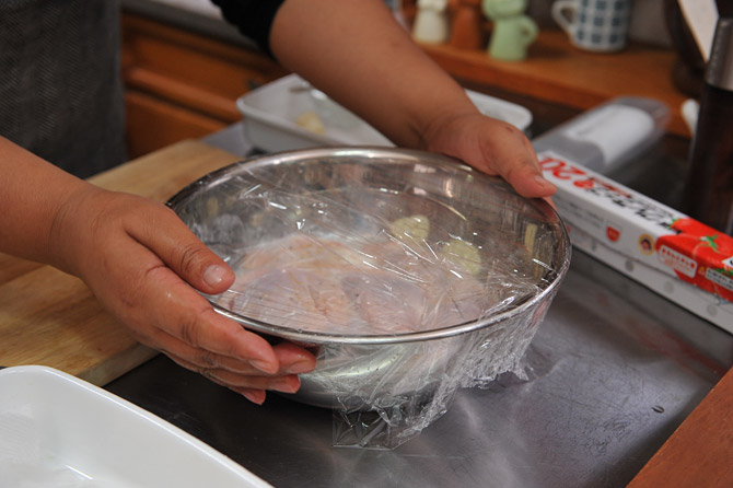 これで冷蔵庫に入れて、ひと晩おきましょう。