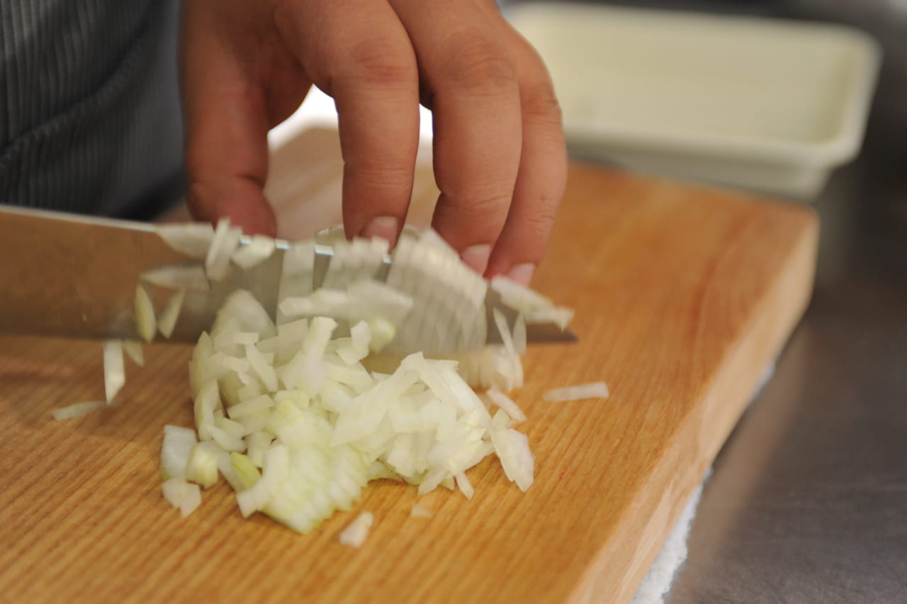 たまねぎをみじん切りにします。