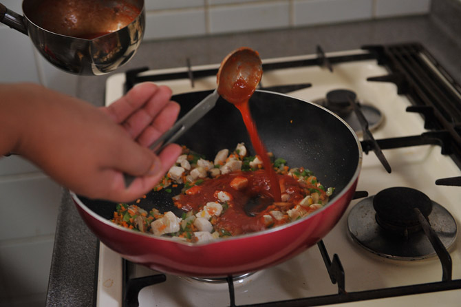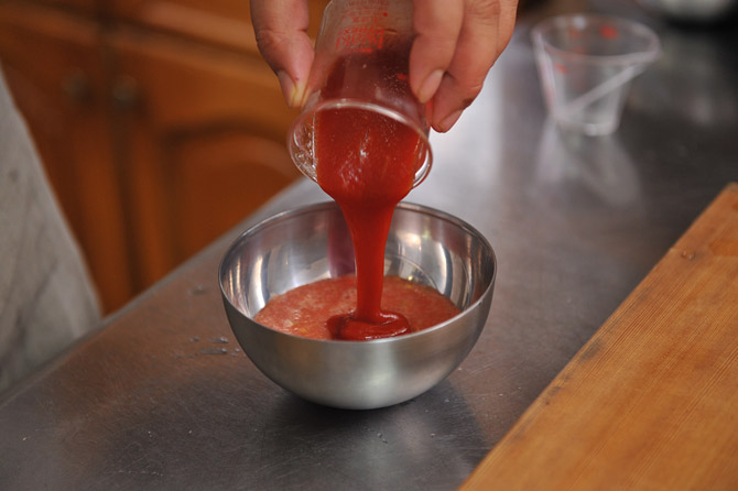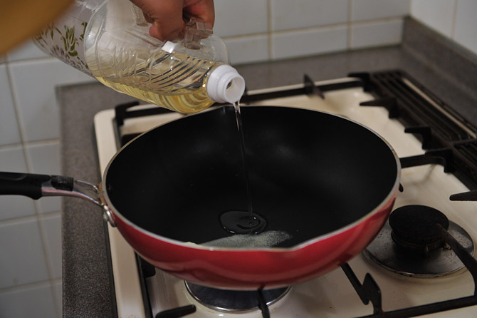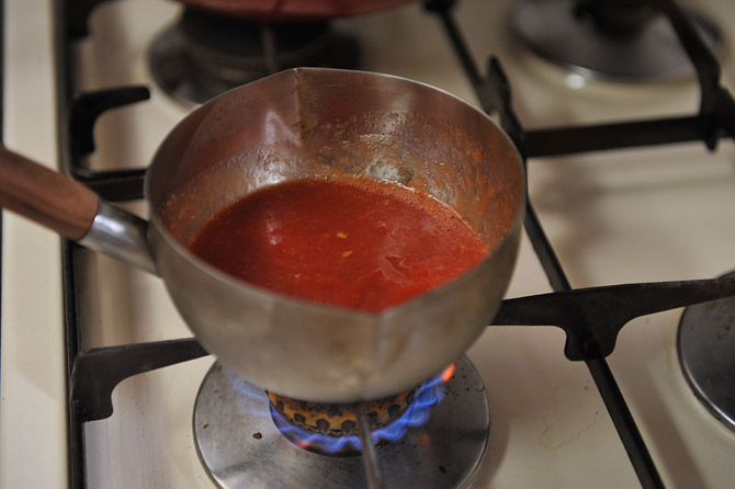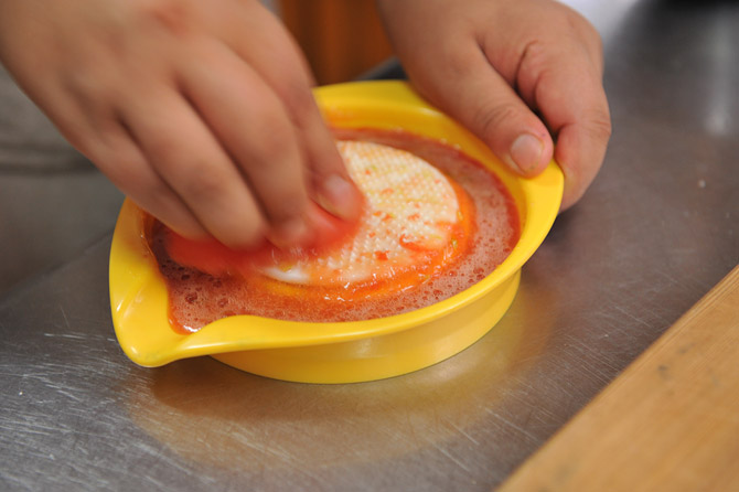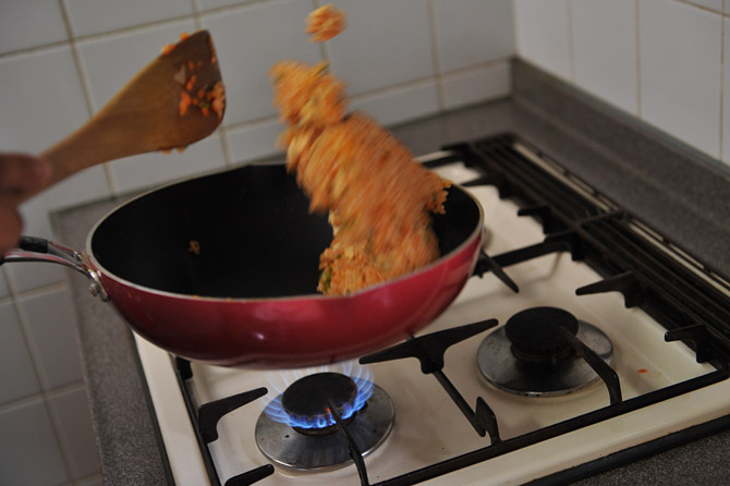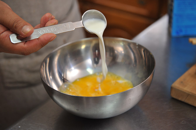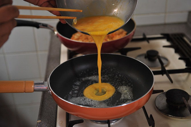 そうなんです、お皿を斜めに、フライパンも斜めに、