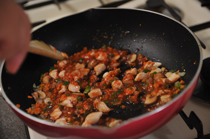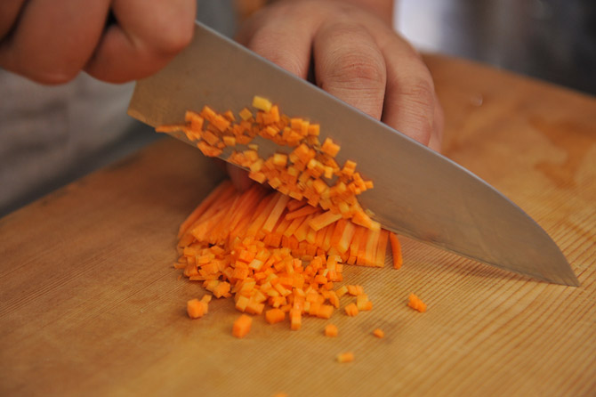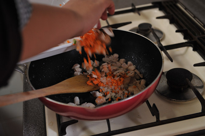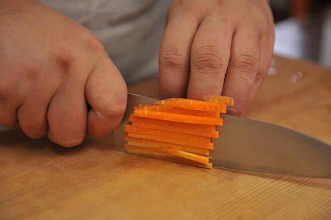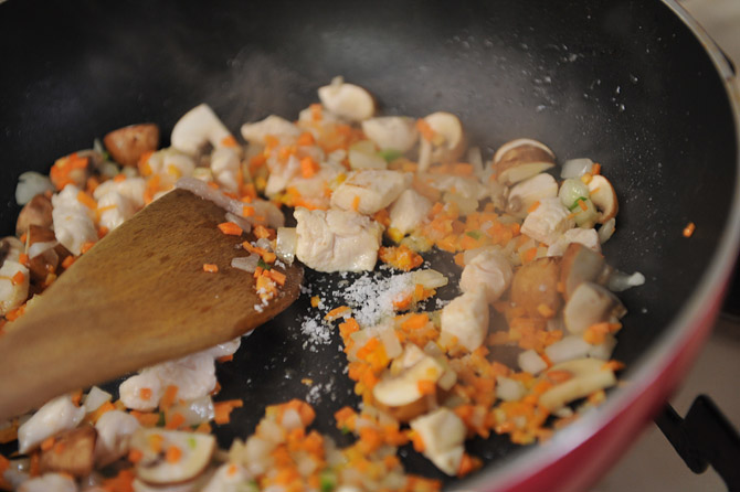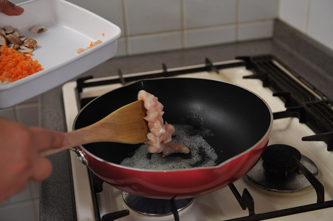 鶏むね肉も、食べやすいように細かくしておきましょう。