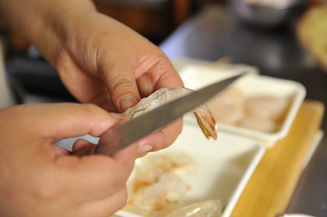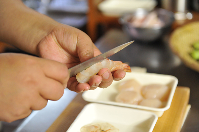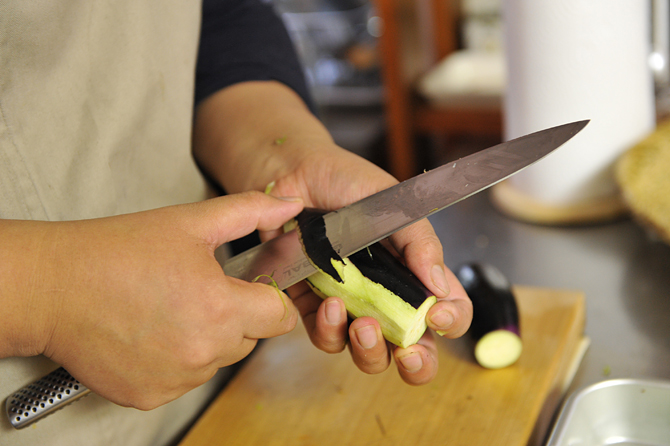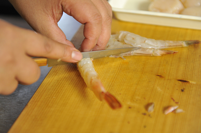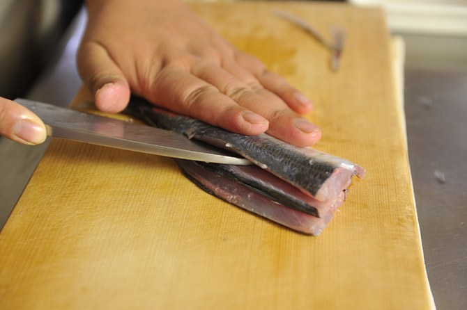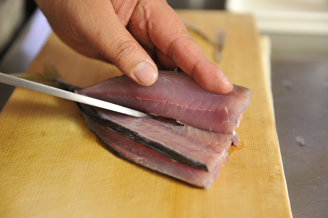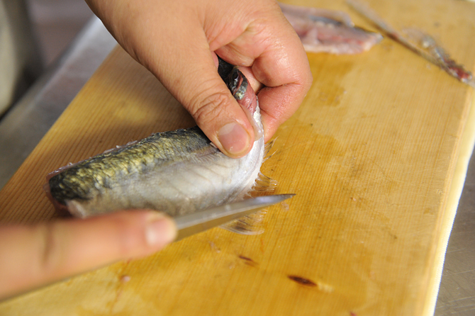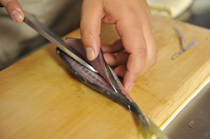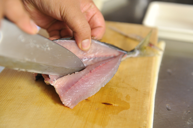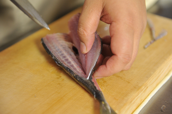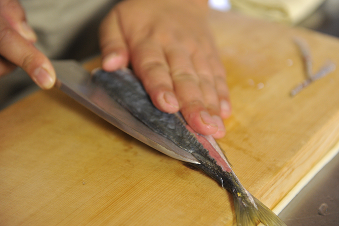 ちらも、腹が切れないように、ぎりぎりまで包丁を入れましょう。
