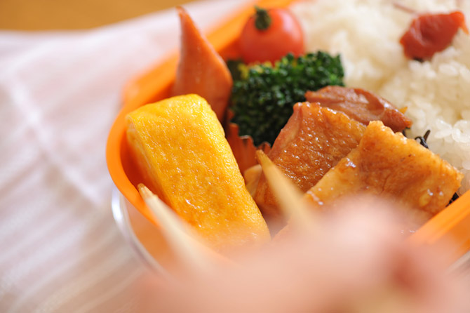 ちょっとちっちゃな自分のお弁当にも、ひときれ。