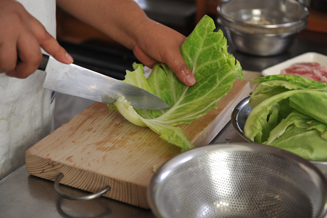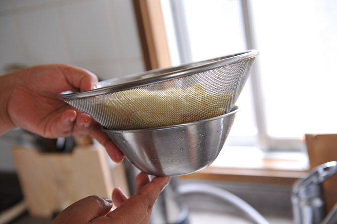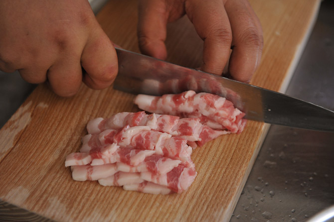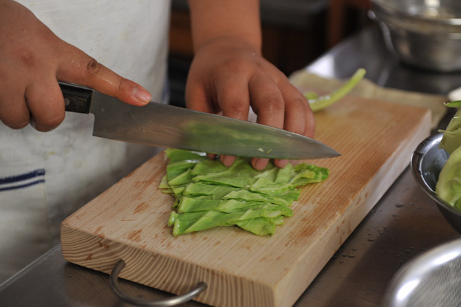 芯の部分は、3ミリの厚さで、斜め切りにします。