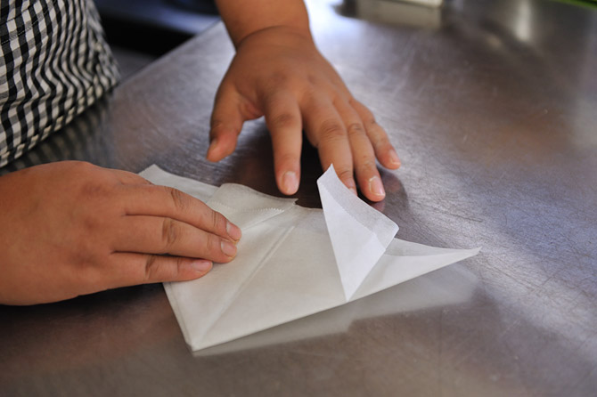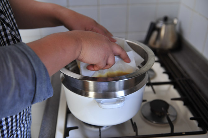 さらに、ふきんや、キッチンペーパーなどにあけて。