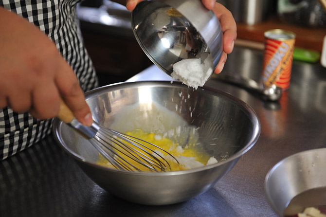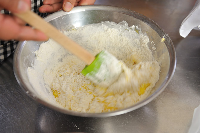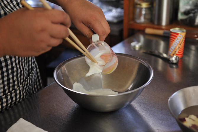 粉っぽさがとれるまで、すくうように、混ぜましょう。