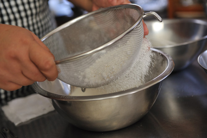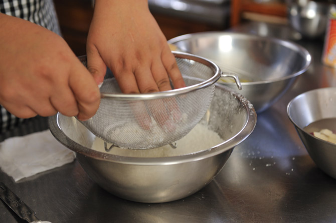 薄力粉とベーキングパウダーを合わせてふるいにかけたものを