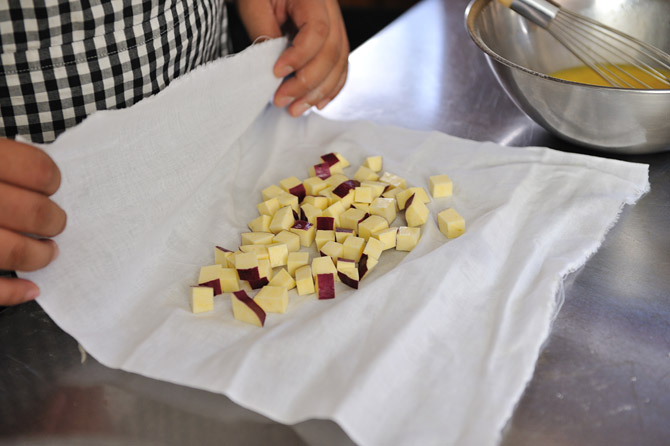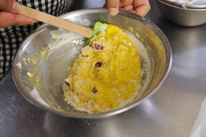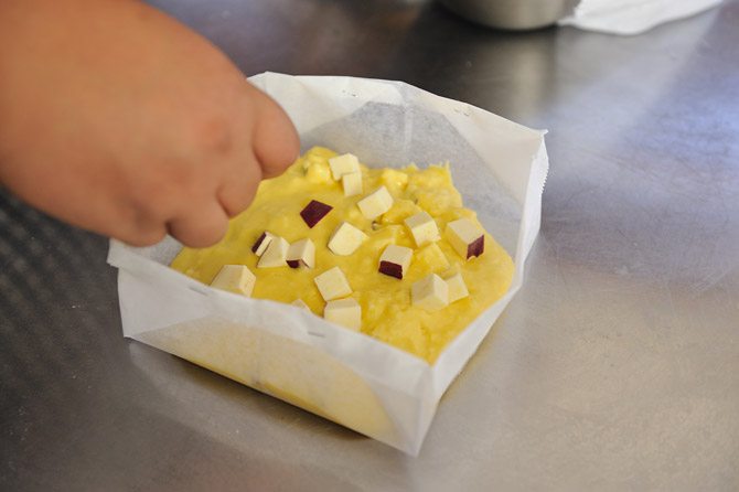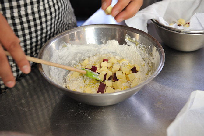 さつまいもがごろごろ入った、素朴な蒸しパンをつくります。
