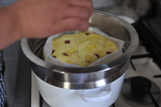 時間がきたら、竹串か尖った菜箸などを刺し、
