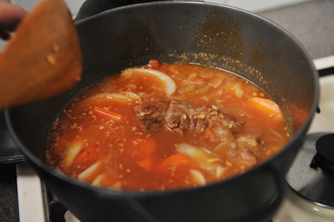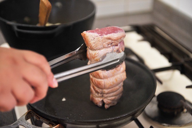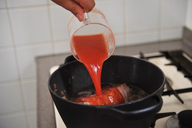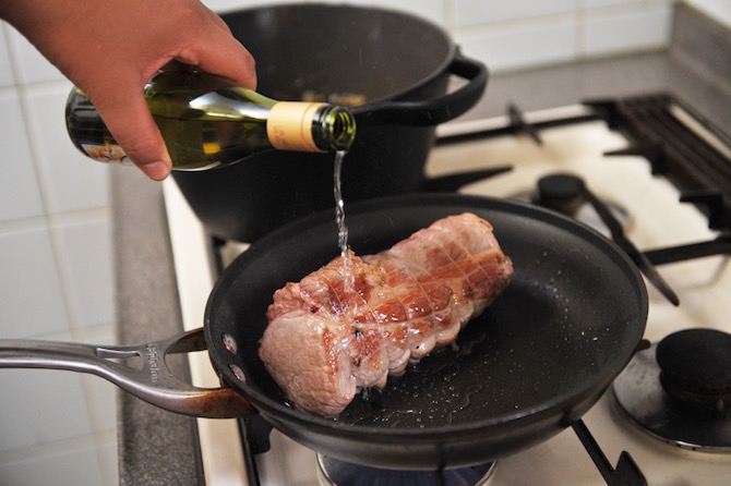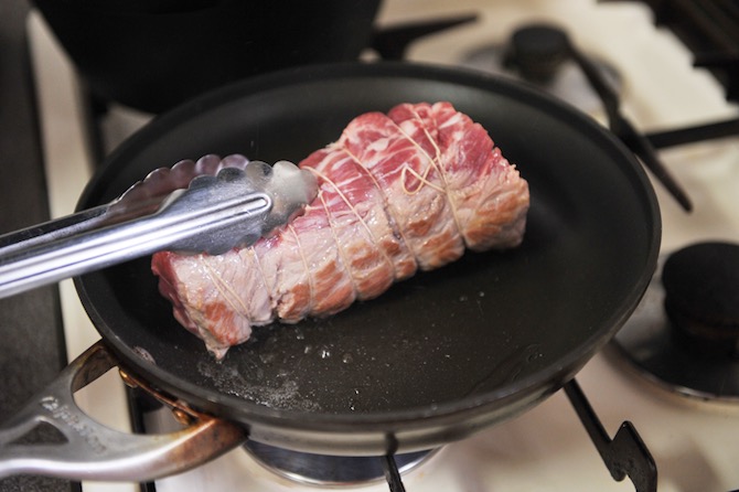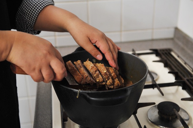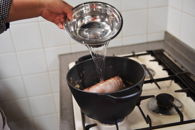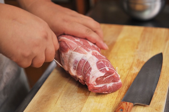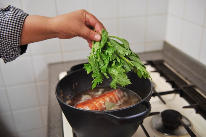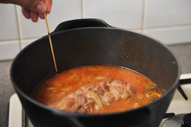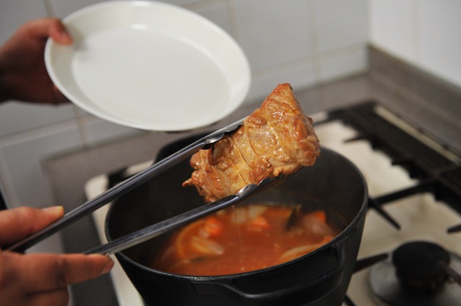 ポイントは、お肉をかたまりでゆでて、いったん引きあげ、