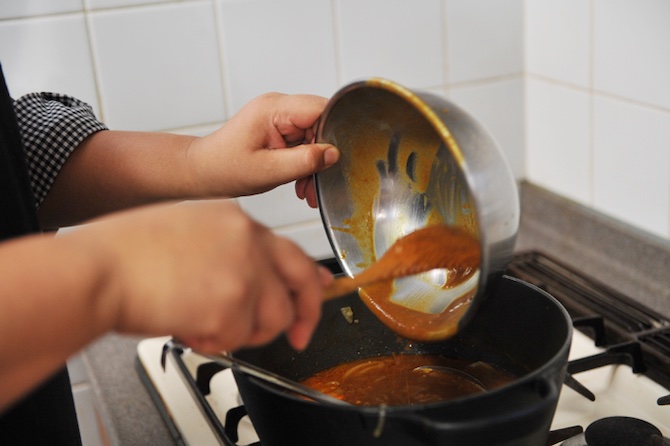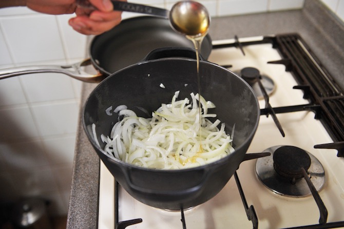 そして、たまねぎを炒めるときは、はちみつを混ぜて炒めることで、