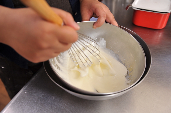 生地の方には卵を使わず、バターもひかえてつくりました。