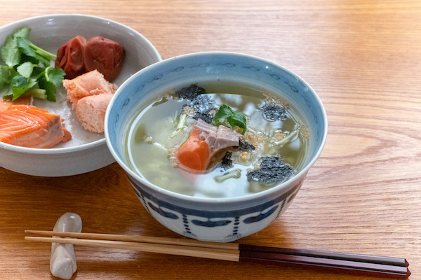 鮭、タラコ、梅干し、三つ葉など、お好みの具を添えて、どうぞ。