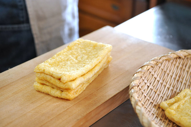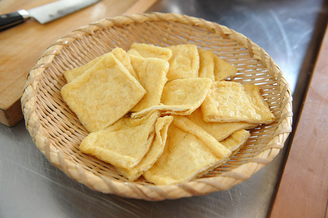できたての油揚げを買ってきました。ふかふかです。