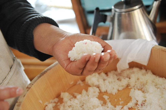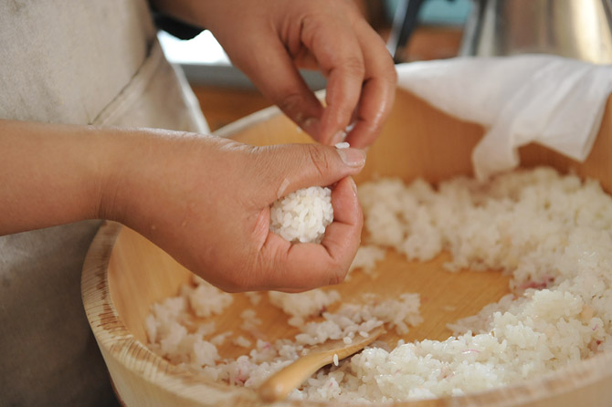 酢めしを、ふわっと、かるく、まるめます。