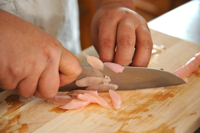 鶏肉には、塩・こしょうで下味がついているので、