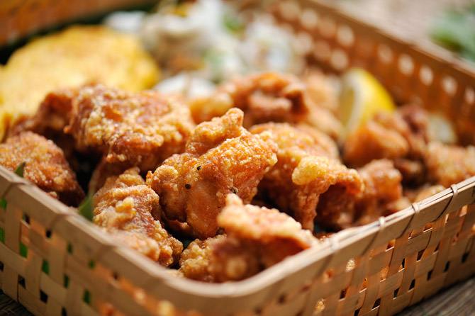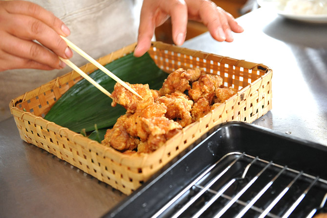 鶏のからあげは、バスケットに。