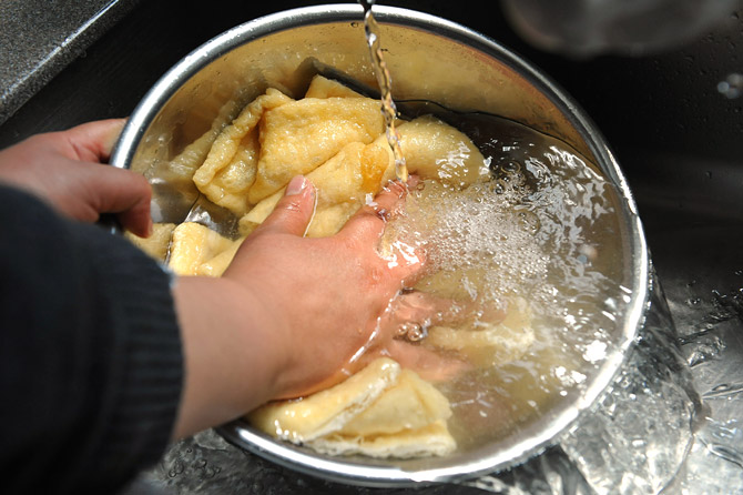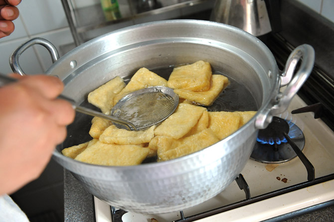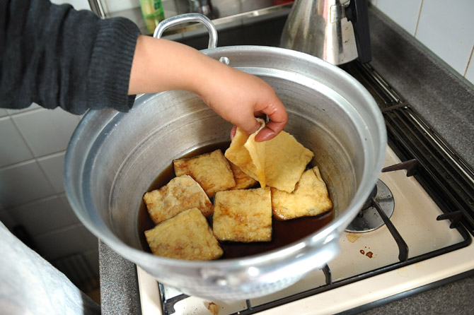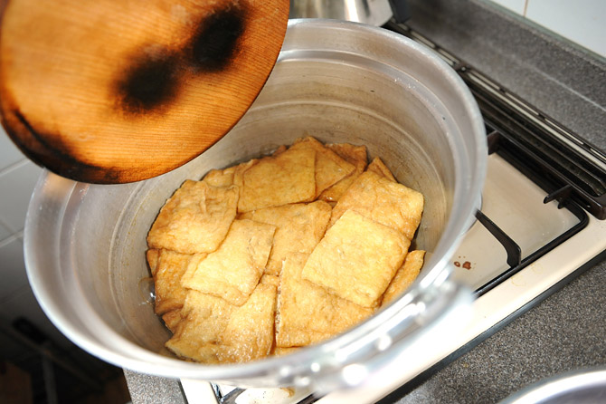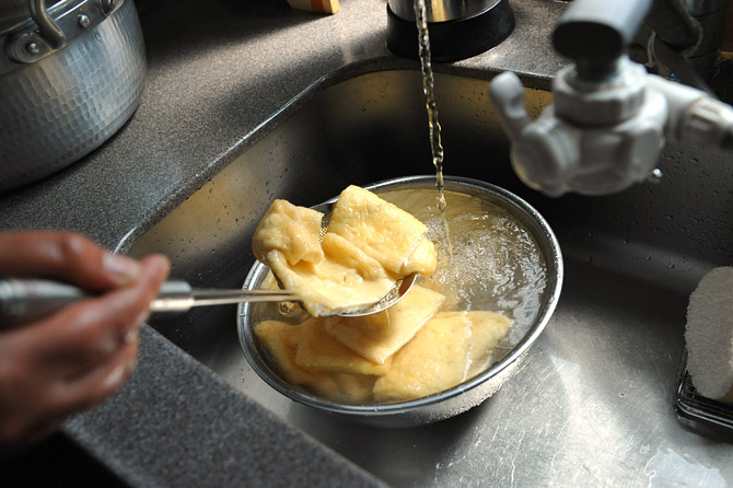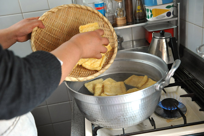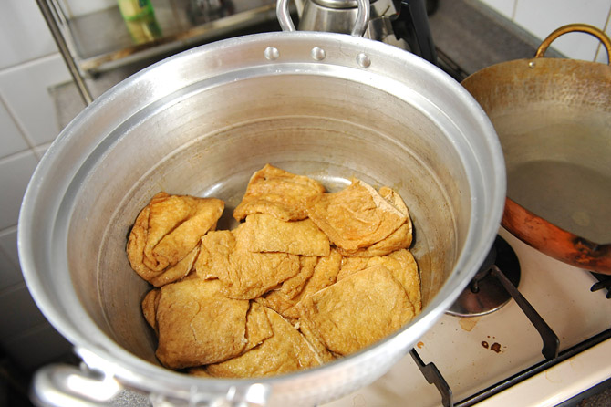 油揚げを、煮る前にもういちど、