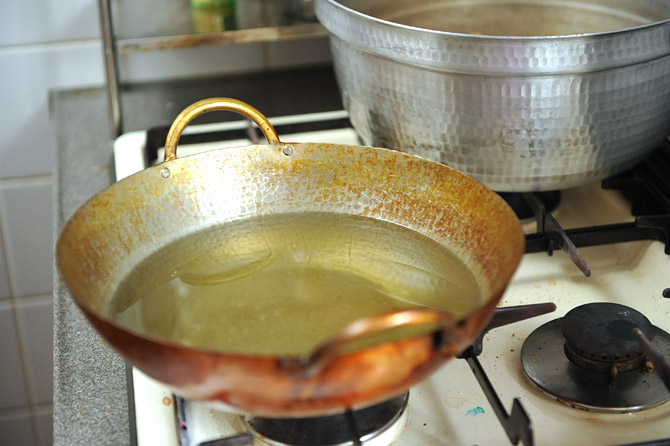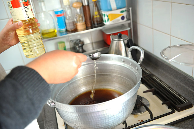 サラダ油をつかいます。まずは170℃で。