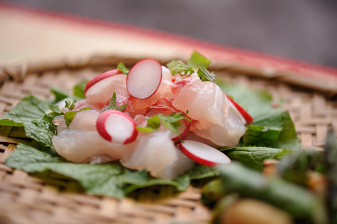 こんな一品も。鯛の昆布〆をサラダ風に。