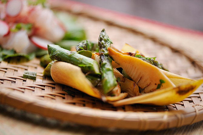 たけのことアスパラを焼いたもの。