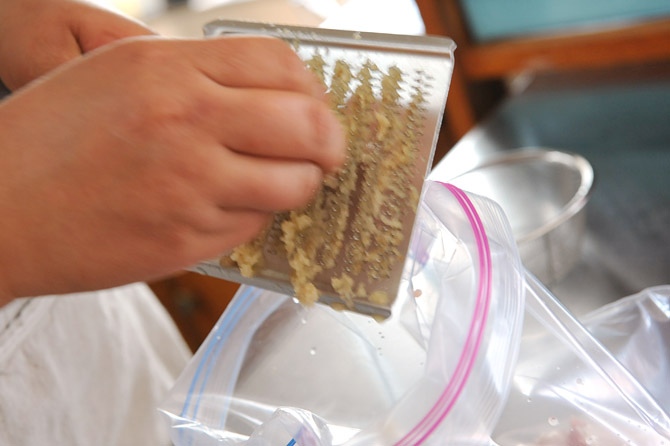 新しょうがの漬物を刻みます。