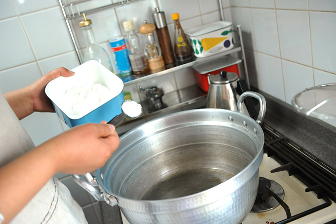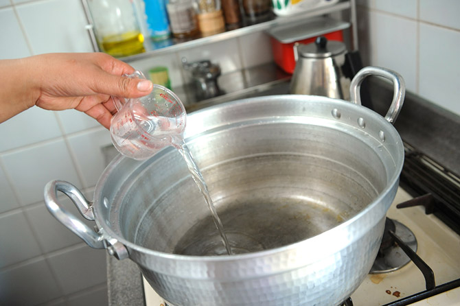 たっぷりのお湯をわかして、その中に入れます。