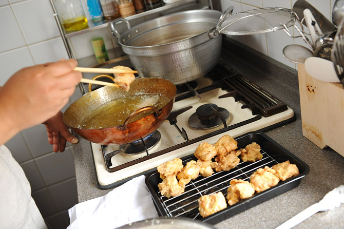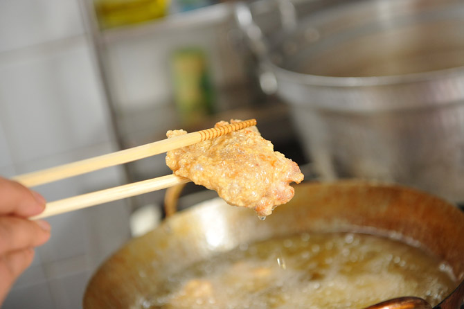 追加のお肉を、あと2回、揚げるくらいのあいだは