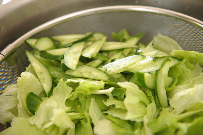 サラダスピナー(野菜の水切り器)があったら使うと便利です。
