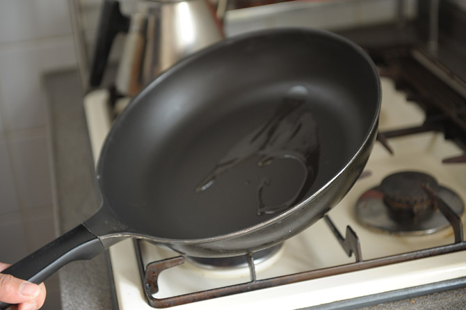 ‥‥じつはこれがポイント。先にアツアツにしておくんです。