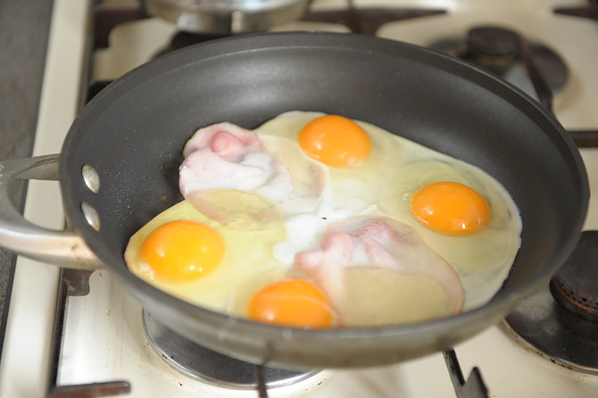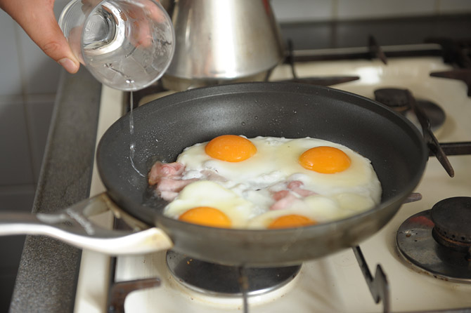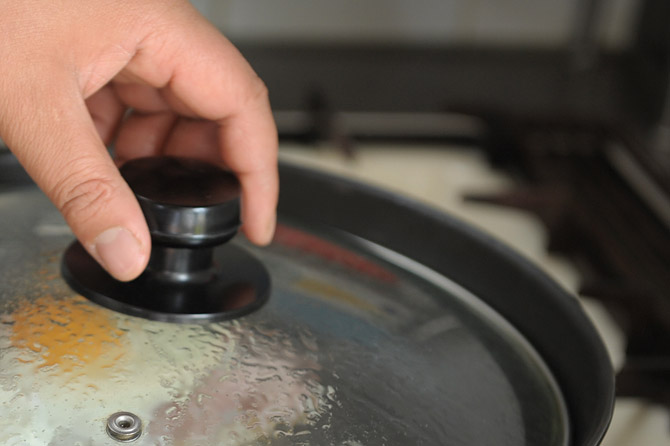黄身の表面がうっすら白くなったくらいでふたをとります。